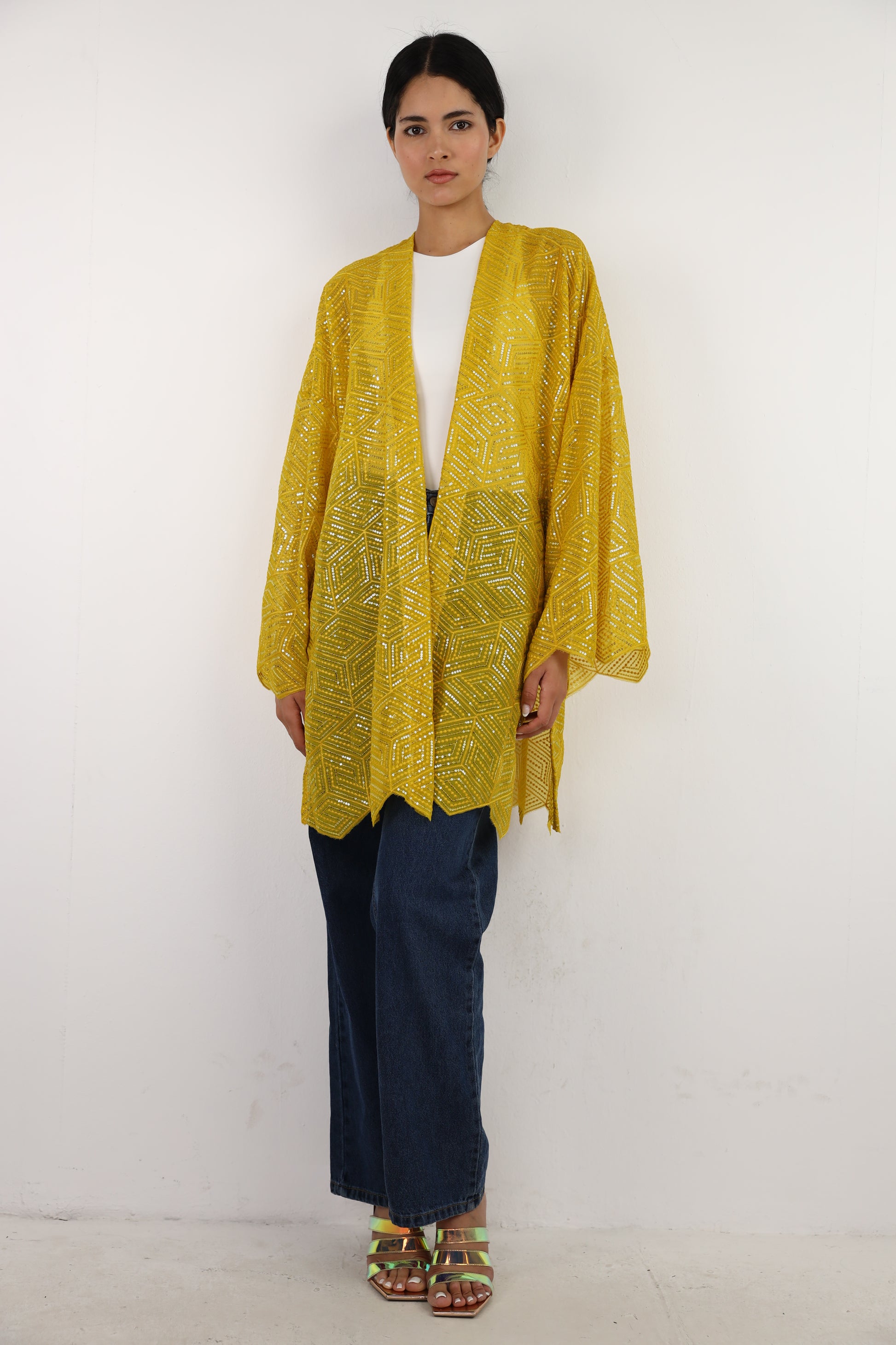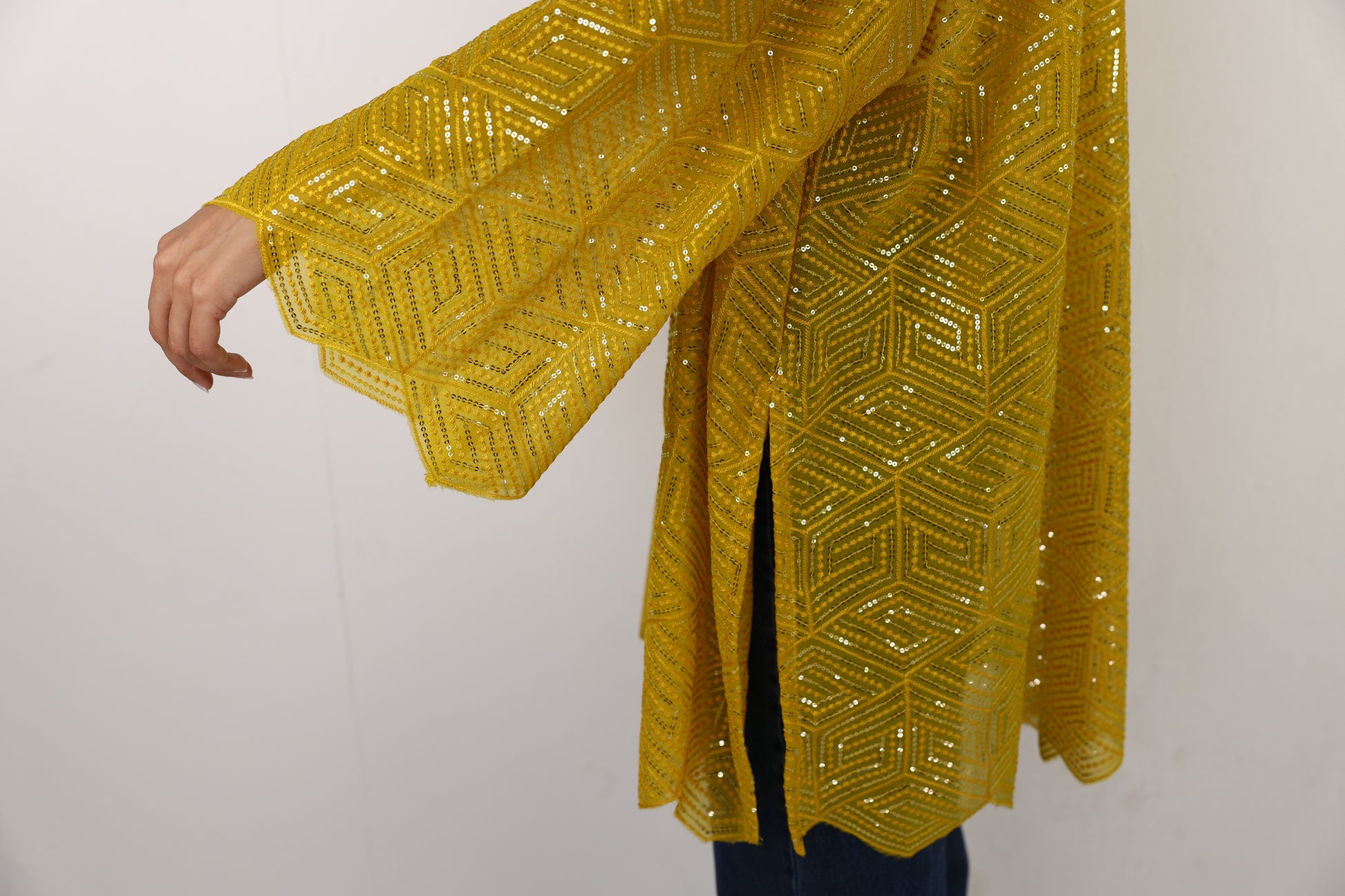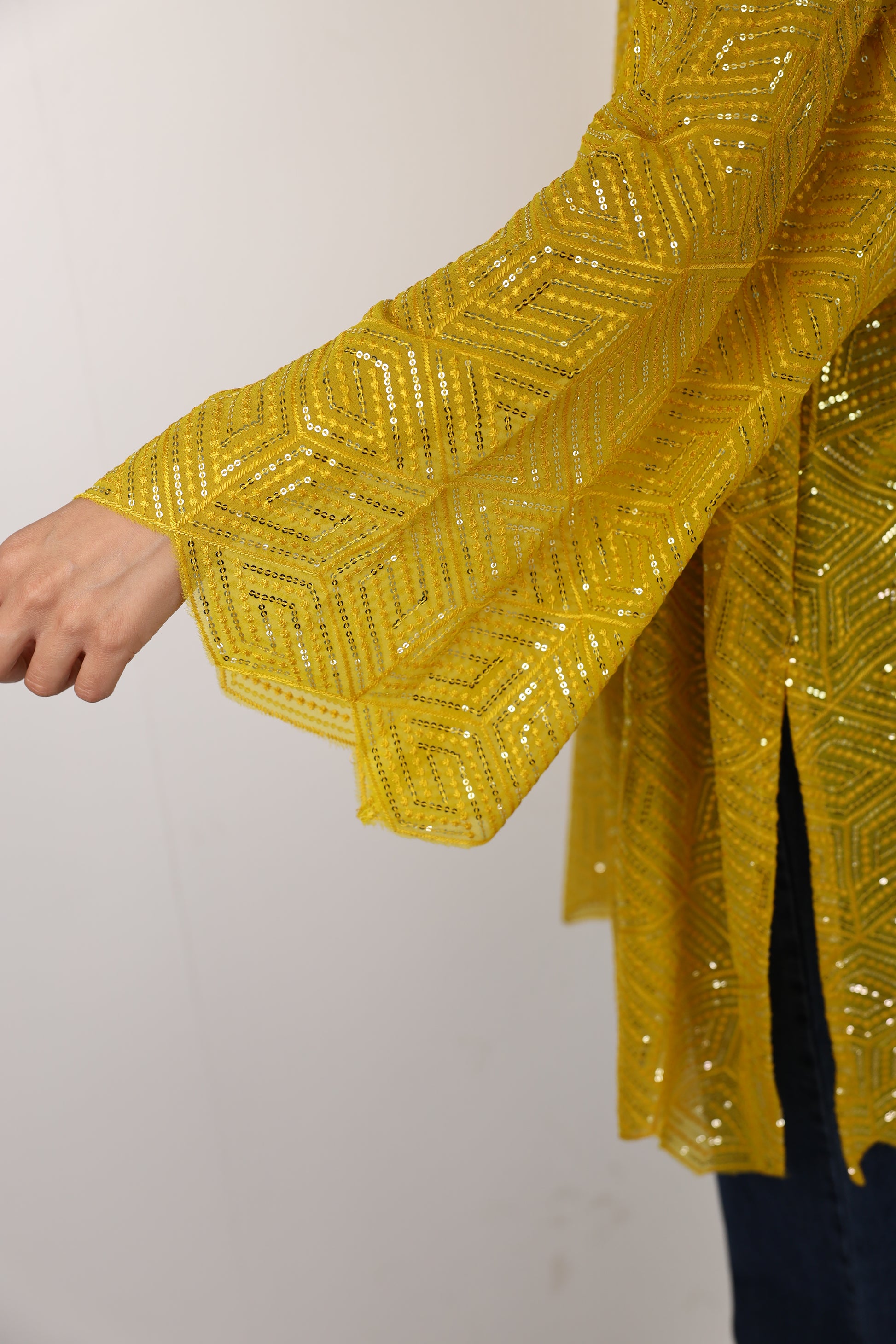 Pure chiffon with sequins & threading embroidery with triangle edges