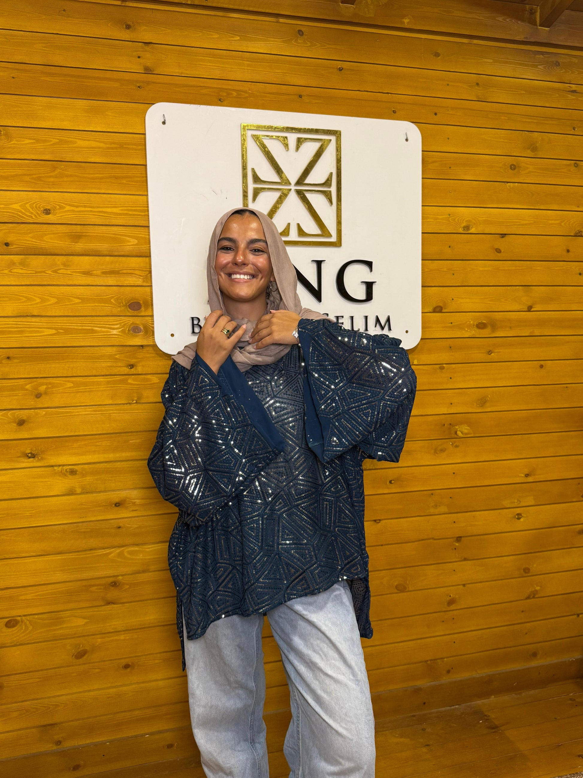 Full moon top in petrol blue