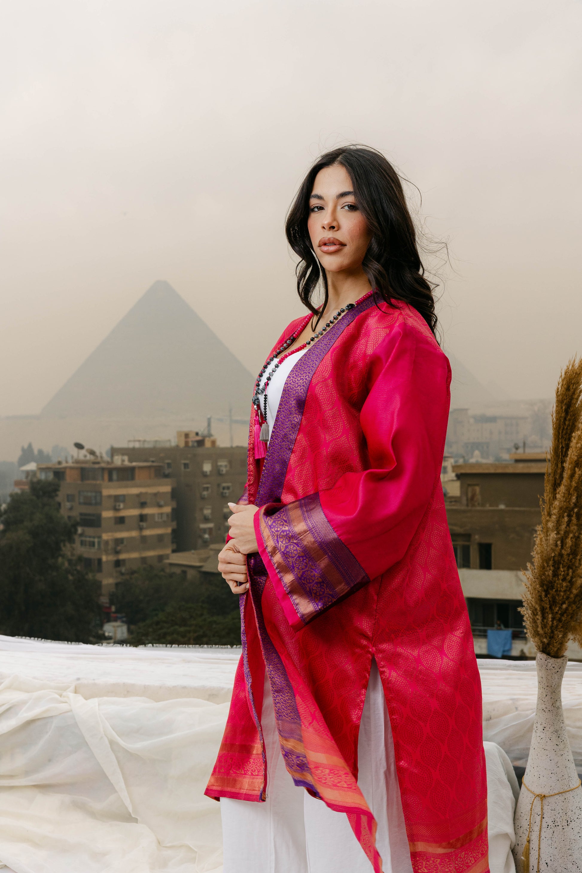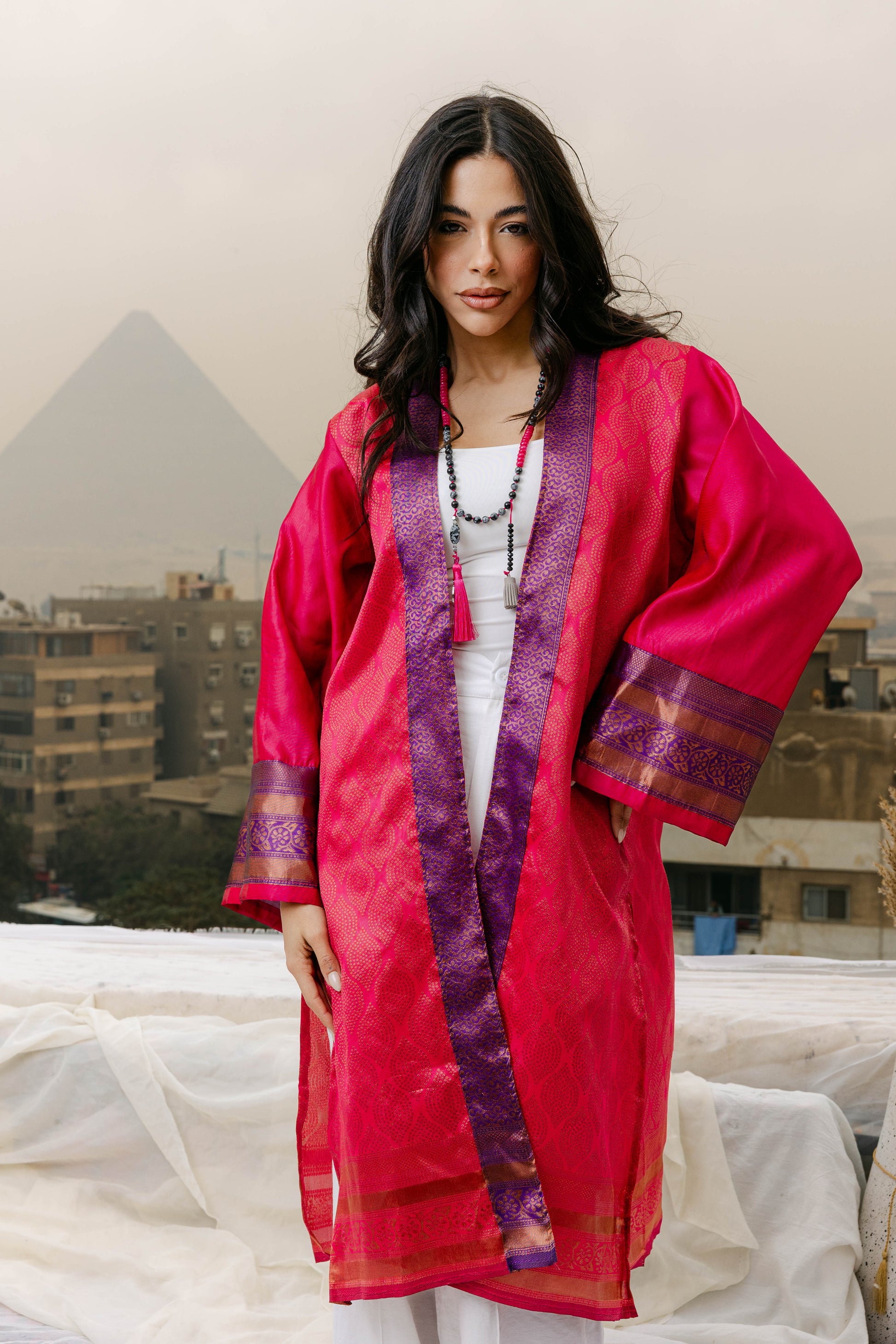 A luxurious cardigan crafted from 100% pure silk, offering a soft, lightweight drape with a natural sheen. Perfect for layering, it combines elegance and comfort, making it an effortless addition to any sophisticated wardrobe.