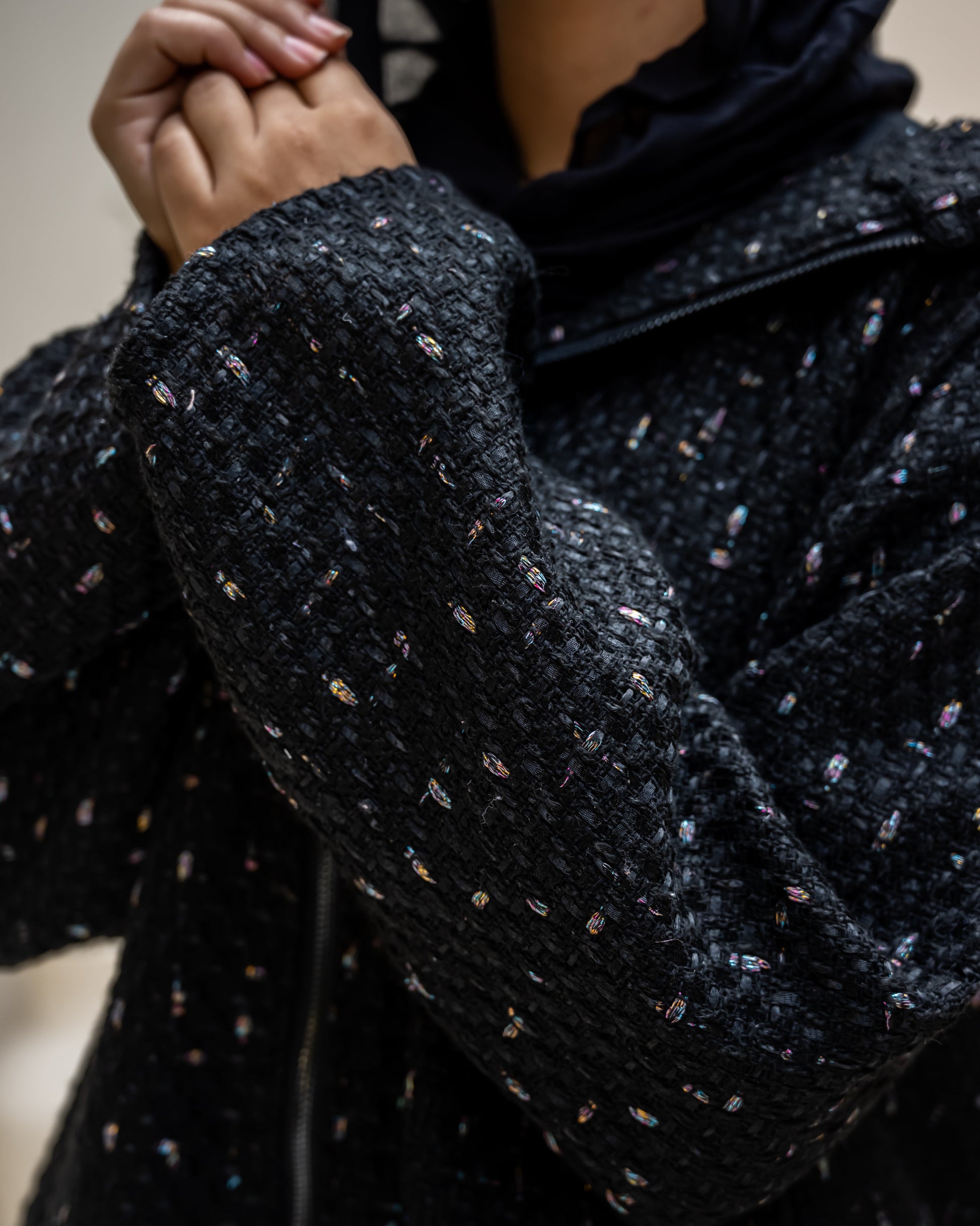 stylish, versatile piece made from premium Bouclé tweed. Its soft, textured fabric adds a touch of elegance.
