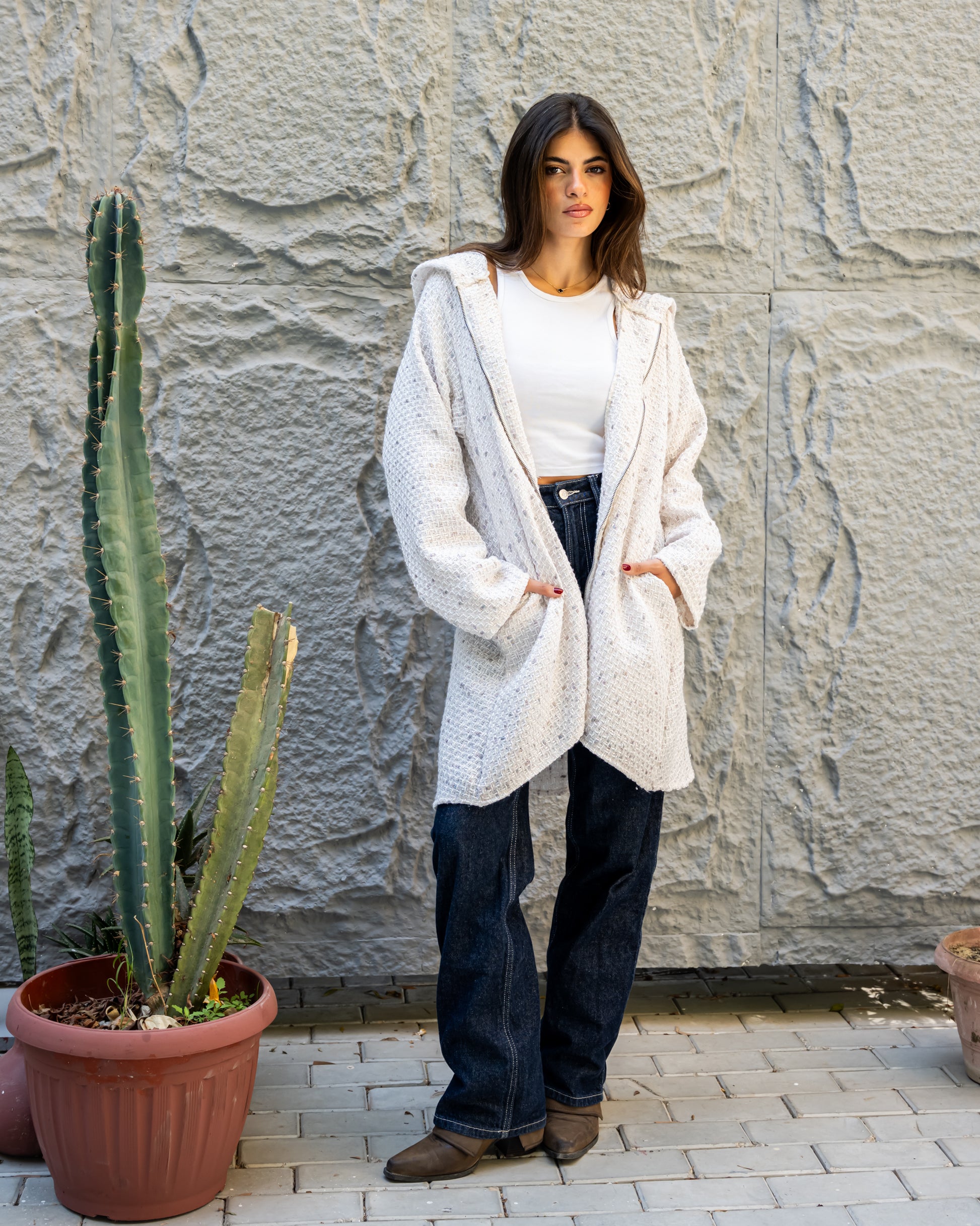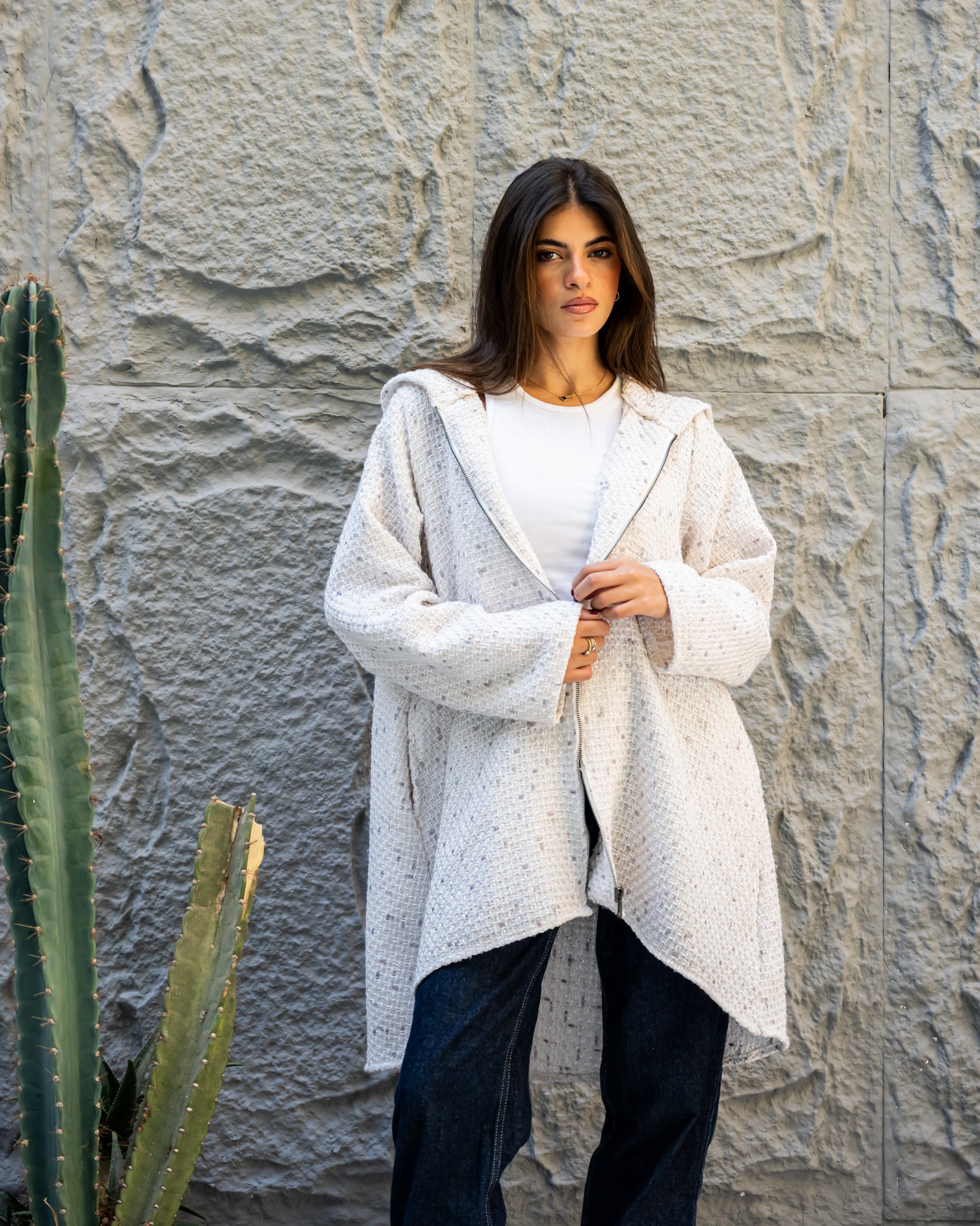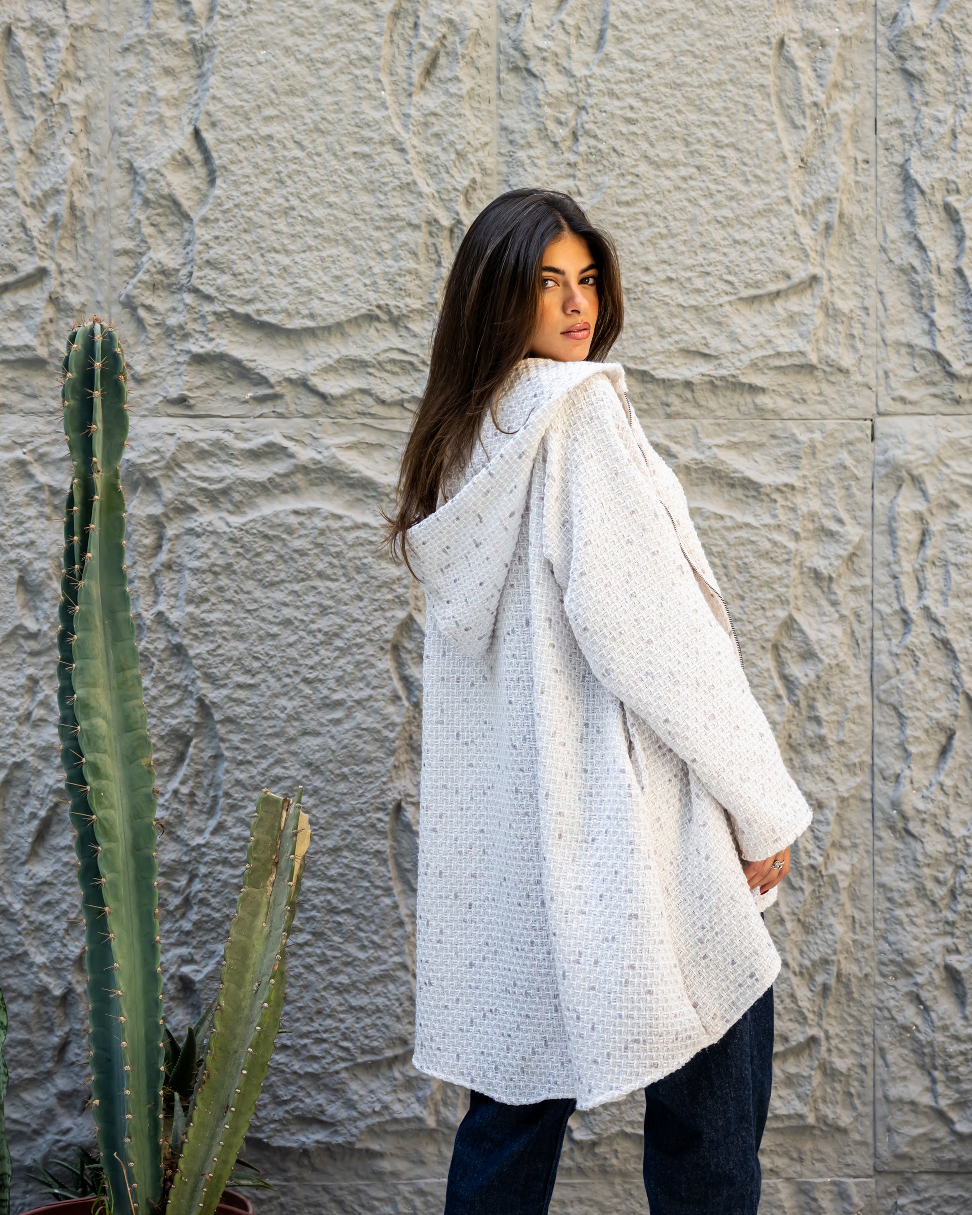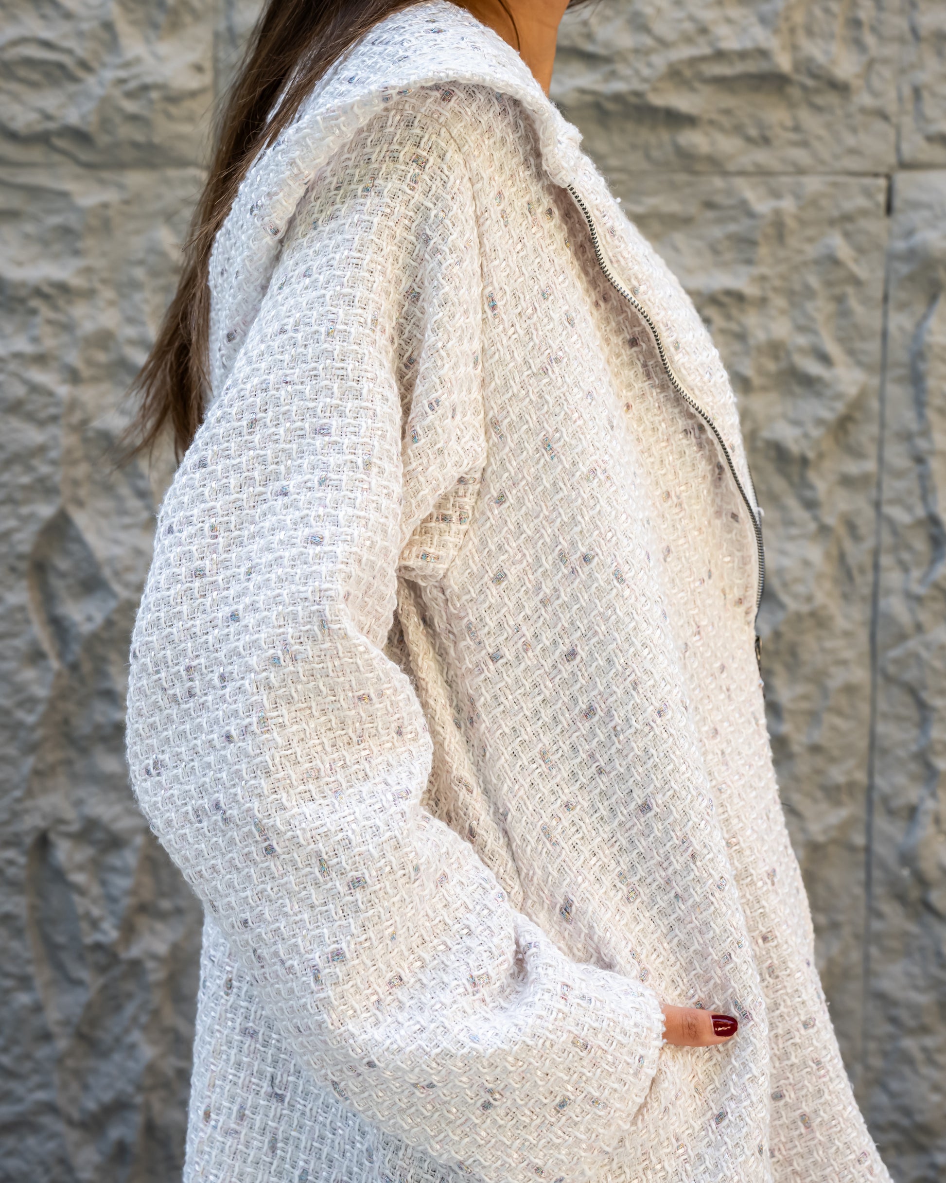 stylish, versatile piece made from premium Bouclé tweed. Its soft, textured fabric adds a touch of elegance.