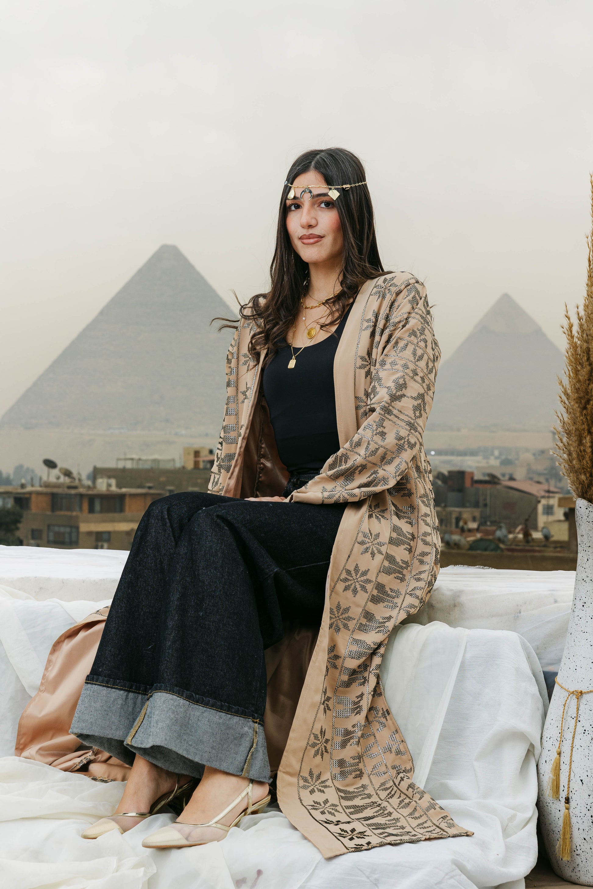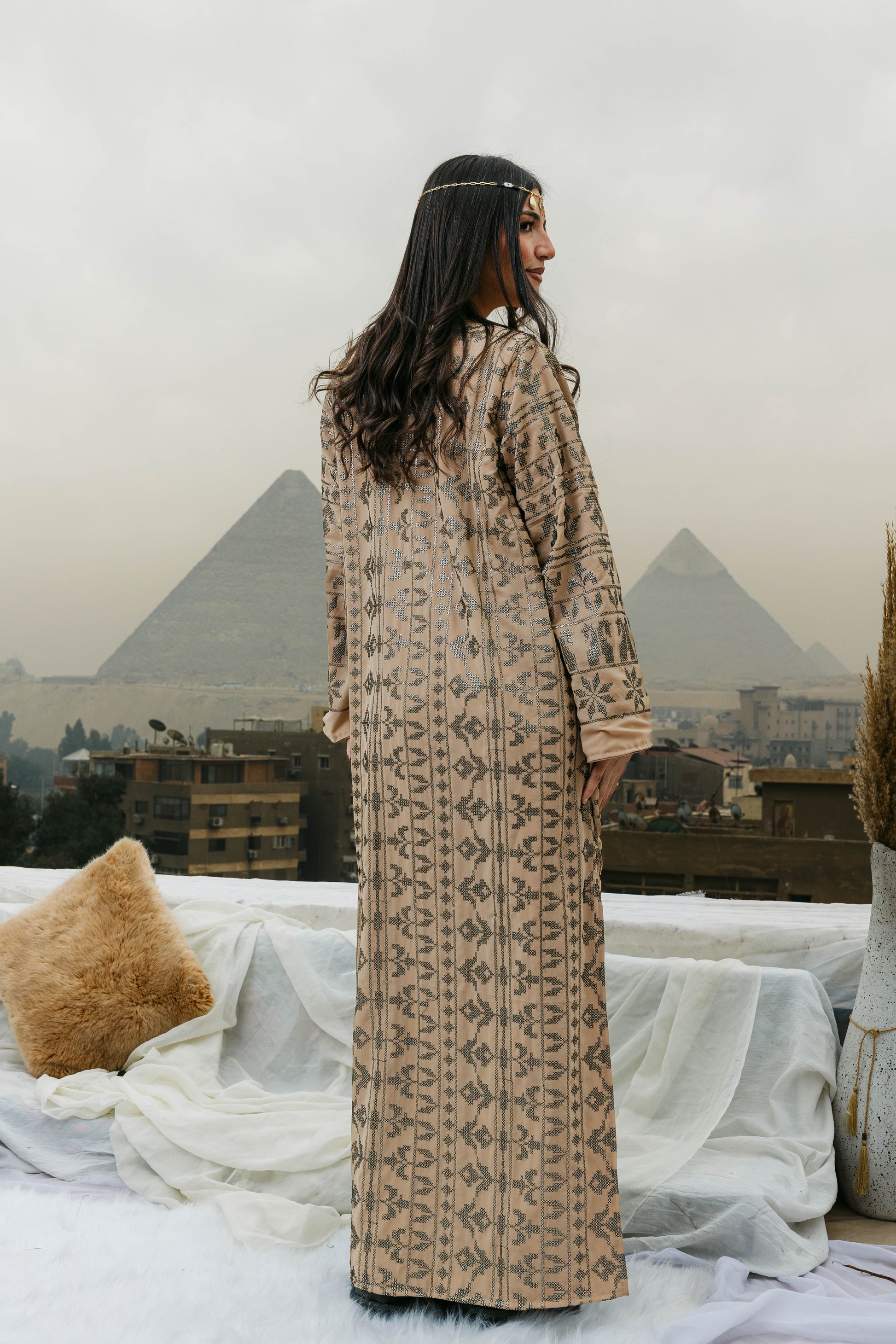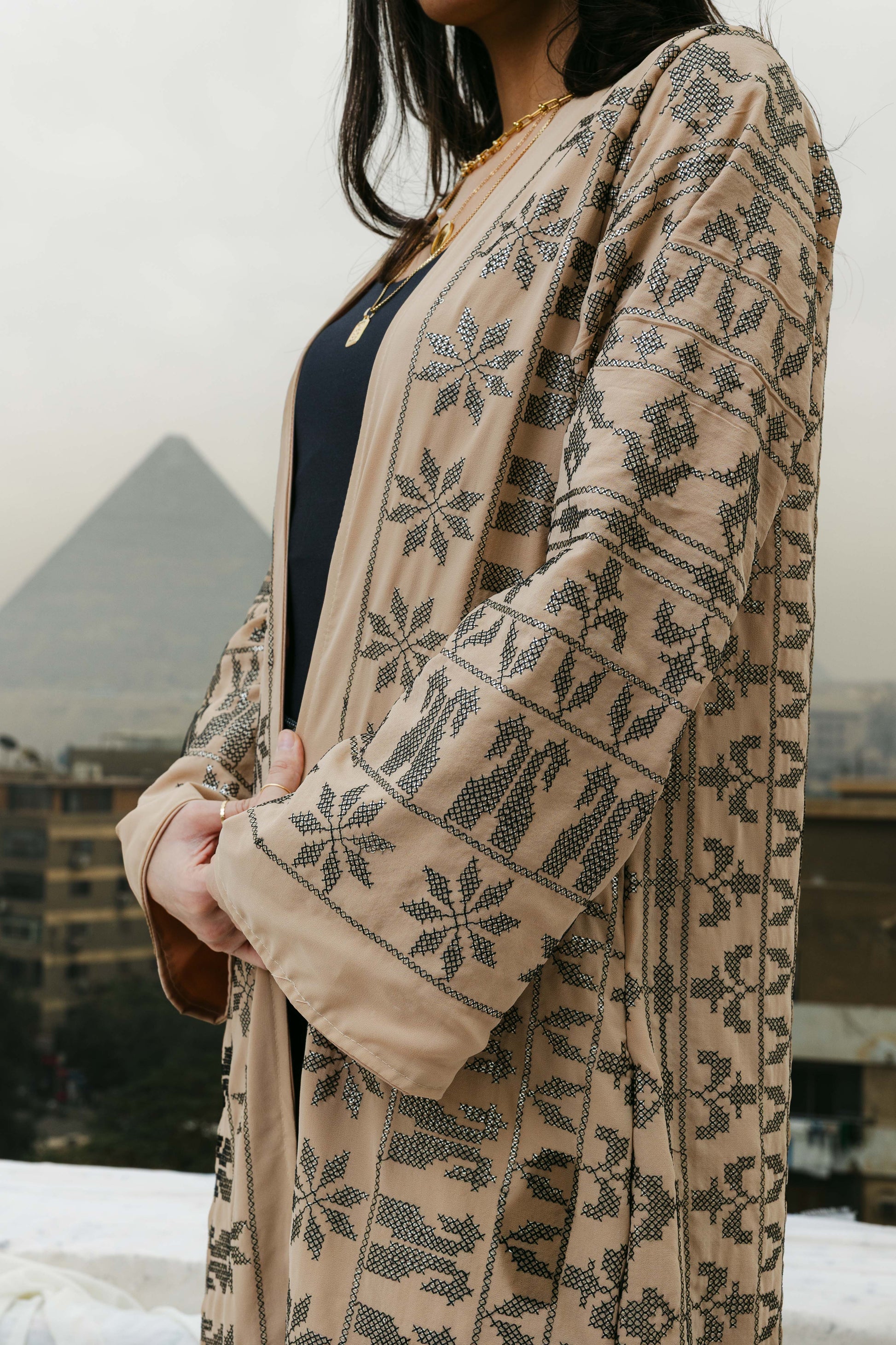 Crepe fully embroidered with threads and sequins, fully lined with soft satin. Stylish, comfortable, and perfect for Ramadan.